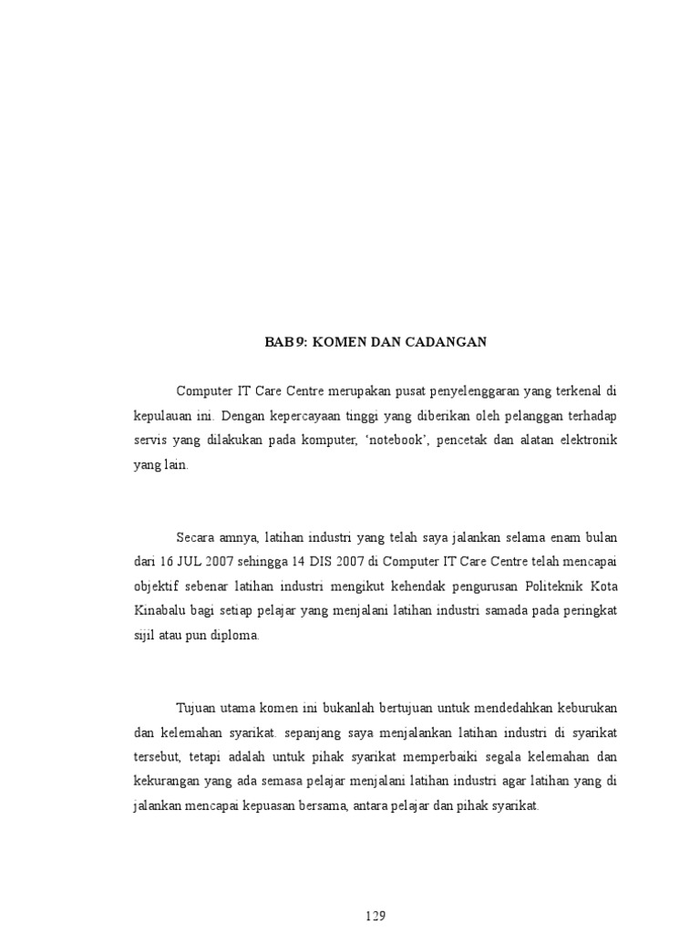 Up to 24 cash back KOMEN DAN CADANGAN. Seterusnya komen dan cadangan ini bertujuan untuk memperbaiki segala kelemahan dan kekurangan yang dihadapi sepanjang menjalani latihan industri ini. Yang mempengaruhi prestasi kerja individu adalah usaha yang ditanamkan ke dalam.